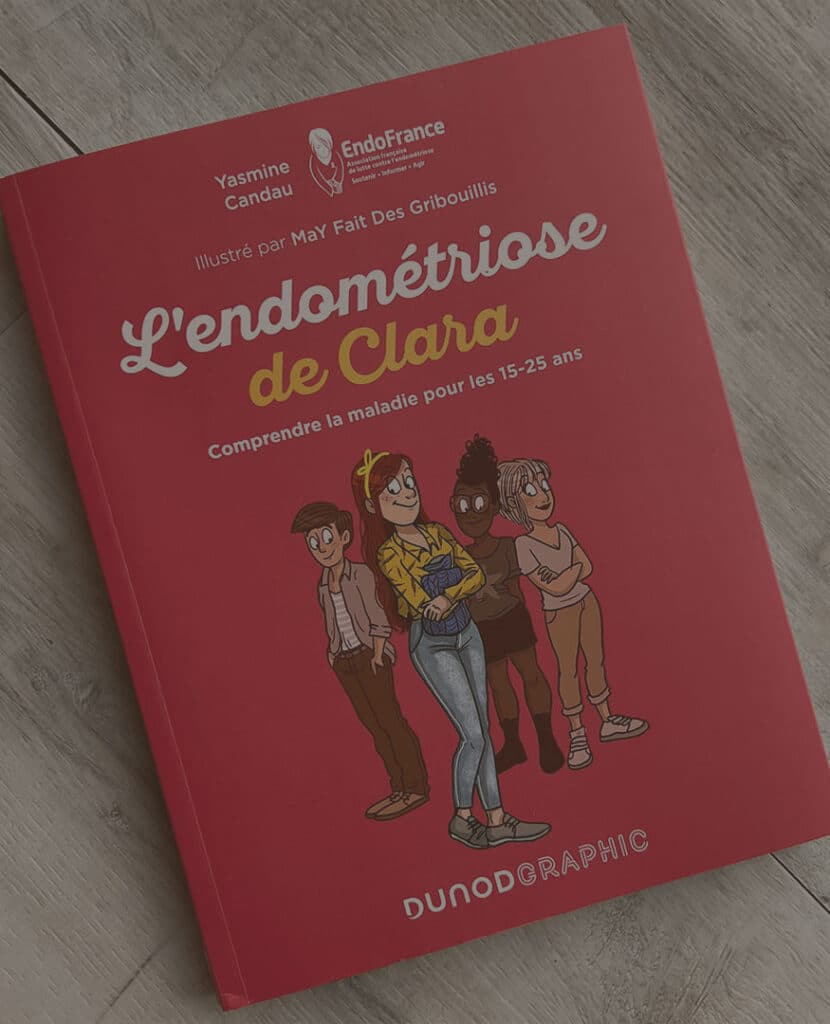 Ce roman graphique rédigé par Yasmine Candau, Présidente de l’association EndoFrance, et illustré avec talent par MaY Fait Des Gribouillis raconte le parcours de Clara, adolescente, confrontée à cette maladie, la difficulté du diagnostic, l’impact sur sa vie sociale, familiale et sur son parcours scolaire. L’histoire de Clara a été rédigée à partir des témoignages poignants reçus par les bénévoles de l’association EndoFrance à l’occasion des événements organisés dans toutes la France. L’histoire de Clara, c’est l’histoire de nombreuses jeunes filles et de nombreuses mères.
