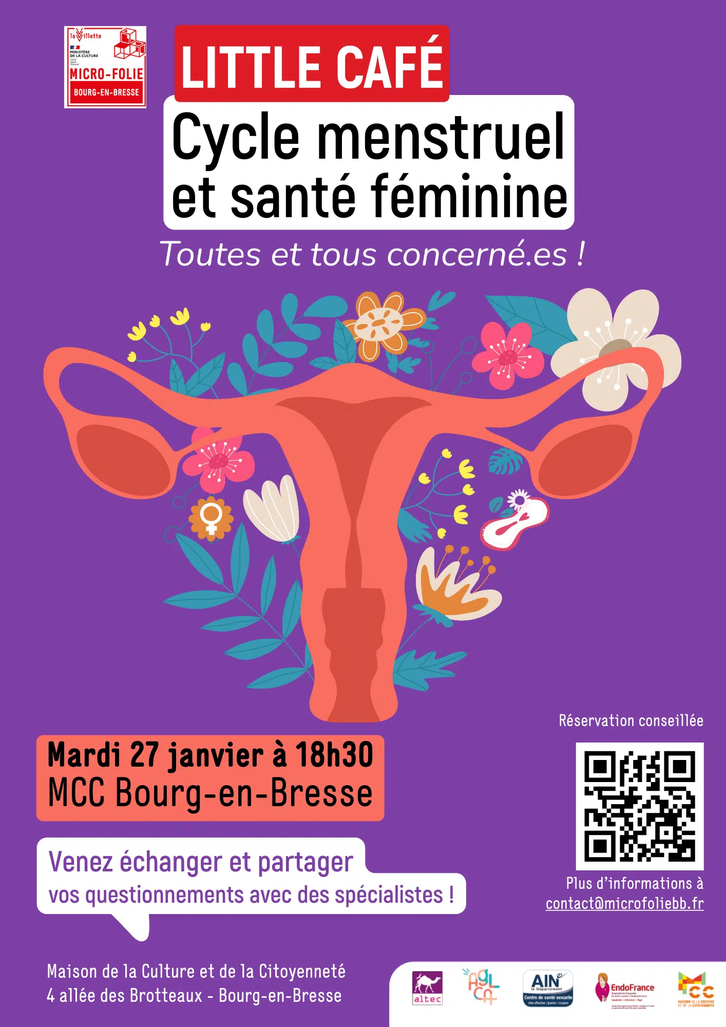 L’AGLCA (Centre Ressource pour la Vie Associative et l’Economie Sociale et Solidaire) et Altec (Centre de Culture Scientifique et Technique de l’Ain) organisent une soirée d’information et d’échange autour du cycle menstruel et de la santé féminine : Little café, cycle menstruel et santé féminine.