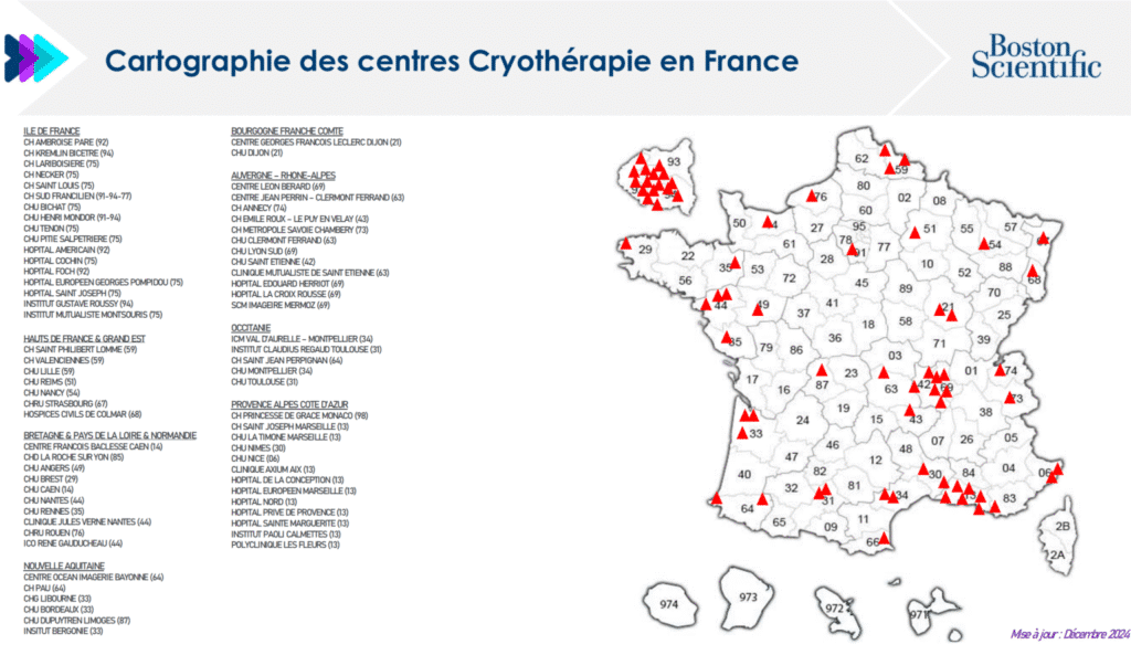 En plus des hôpitaux et cliniques indiqués dans la carte ci-dessous, la cryothérapie est pratiquée dans les établissements suivants :