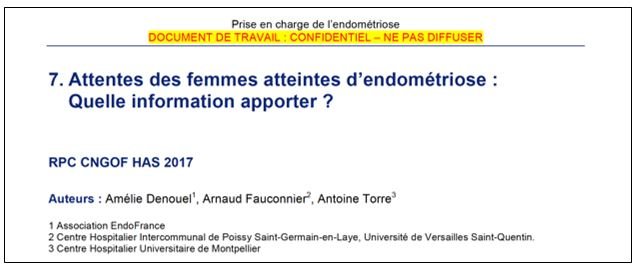 EndoFrance rédactrice du chapitre des recommandations portant sur l’information a délivrer aux patientes.